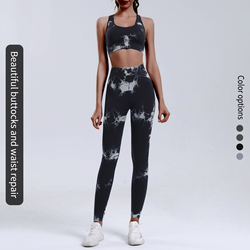 Custom Nieuwe Tie-Dye Naadloze Yoga Pak Vrouwen Fitness Sportbeha Ondergoed Strakke Heup-Lifting Hoge Taille Yoga Sets