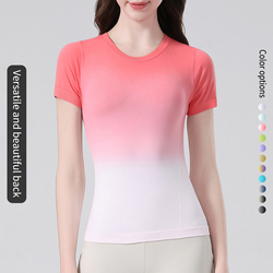 Degrade Yoga üst spor taban gömlek ışık ve ince çalışan kadın çabuk kuruyan yuvarlak boyun açık alan sporları Yoga kıyafeti