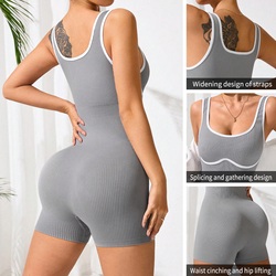 Kontrast renk dar ve nervürlü Yoga tulum ile dikişsiz tek parça Yoga tulum