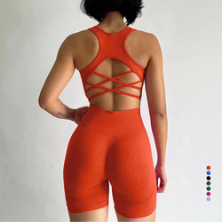Spor çapraz geri tek parça Yoga elbise çıplak anlamda çabuk kuruyan nefes yüksek elastik dantel-up moda Fitness Yoga giyim
