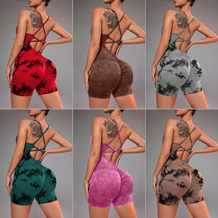 Dikişsiz tek parça Yoga seti güzellik geri tek parça şeftali kalça egzersiz elastik yüksek bel kalça kaldırma spor kravat-boya yıkanmış tulum